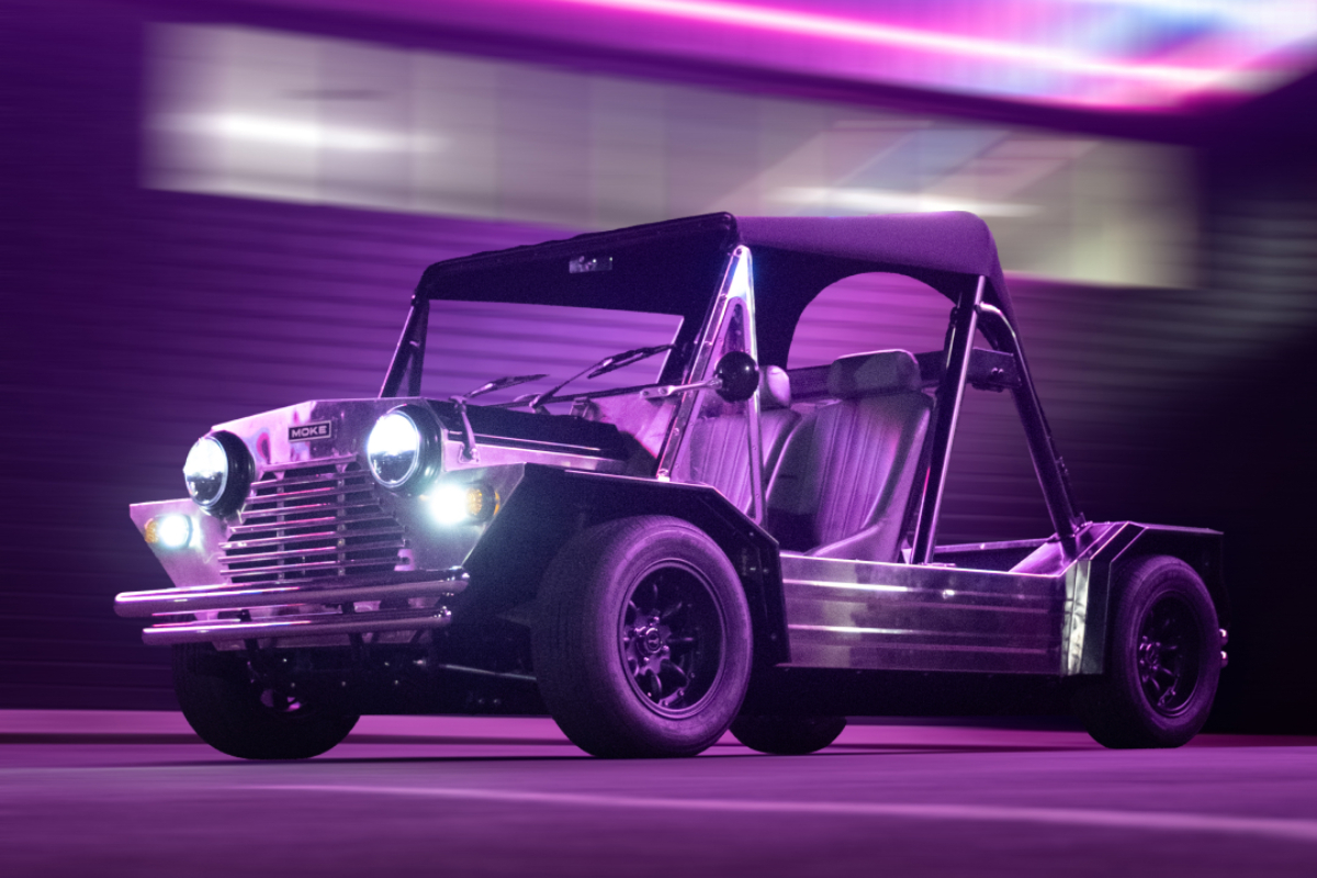 Having previously launched an EV conversion for the related Mini, Jaunt’s Moke EV sees its engine swapped out for a more potent front electric motor and 19kWh battery.