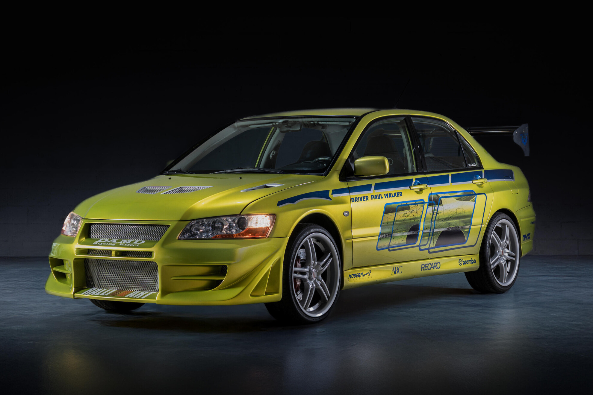 Filled with Japanese import cars, one of the star cars driven by protagonist Brien O’Conner – played by Paul Walker – was a Mitsubishi Lancer Evo 7, instantly recognisable thanks to its metallic yellow and green paint, plus of-its-time graphics and body modifications.