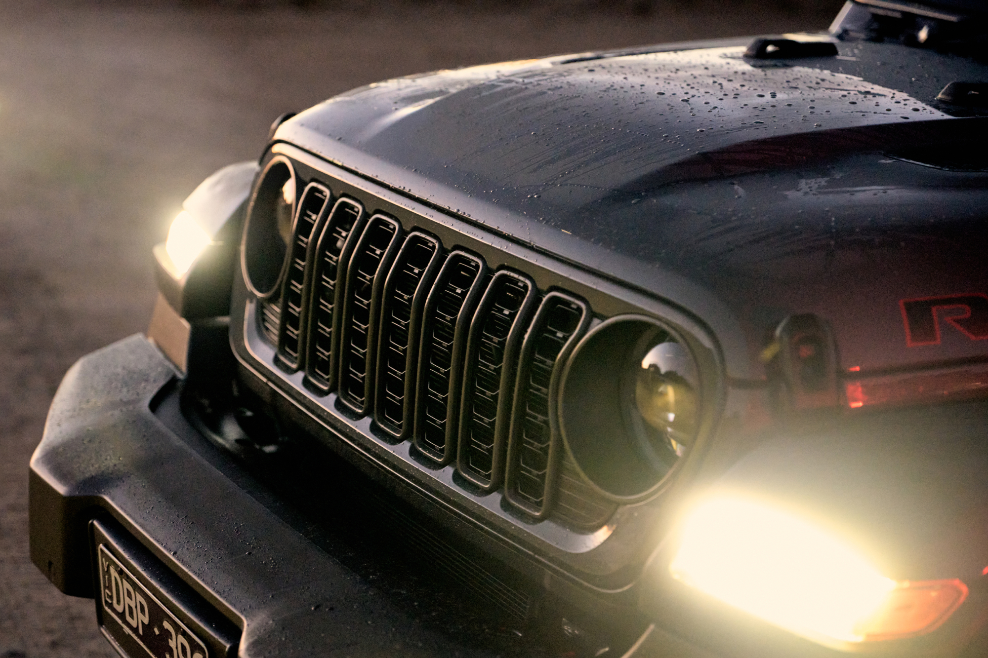 Following the update, the Gladiator now adopts a new front grille – still retaining Jeep’s famous seven slots – a new 17-inch wheel design (shod in 32-inch off-road tyres), and body coloured fender flares.
