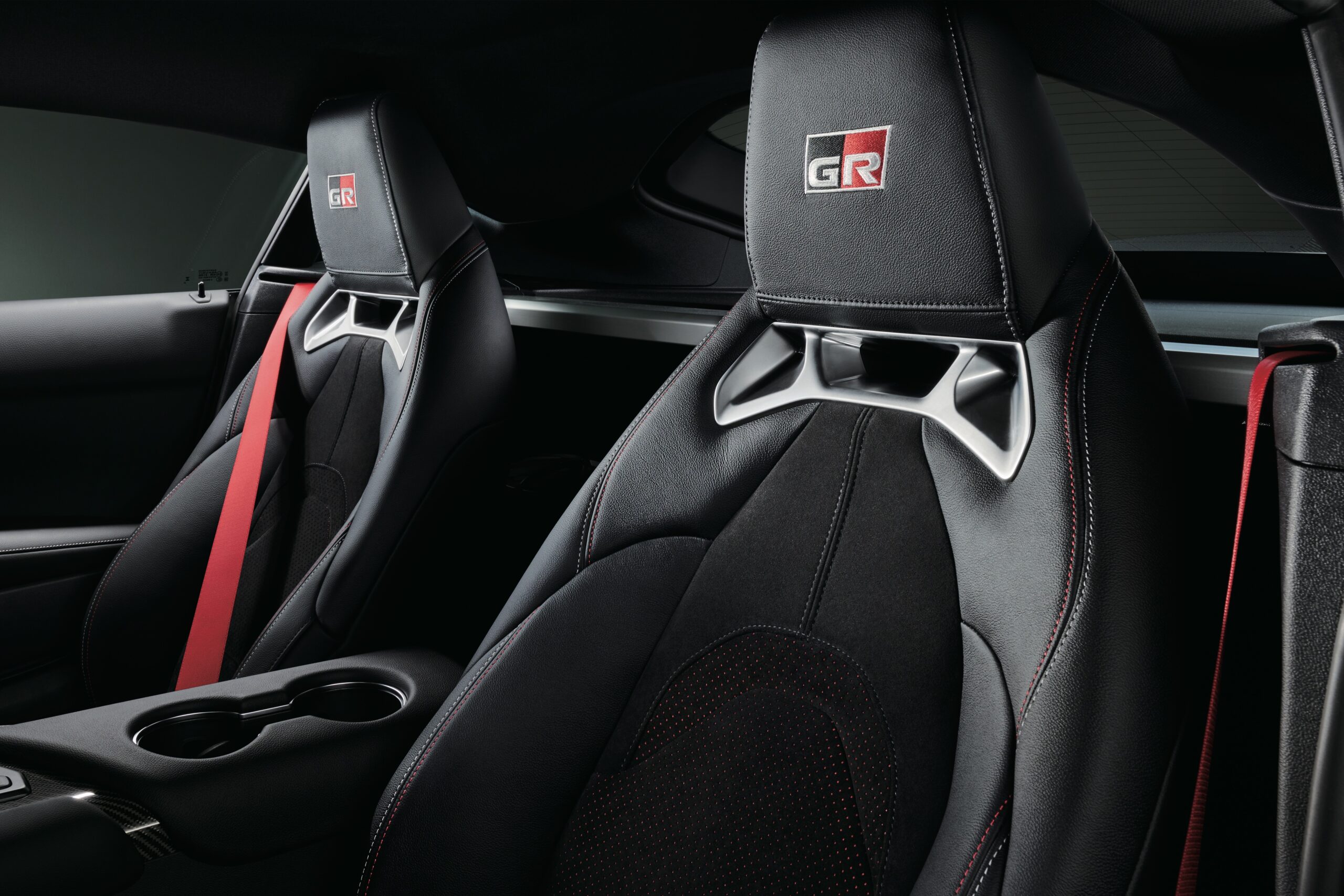 There are interior enhancements too, such as red seat belts and black Alcantara upholstery, which includes embroidered GR logos on the seat headrests. Manual versions also get a red ring surrounding the gear knob.
