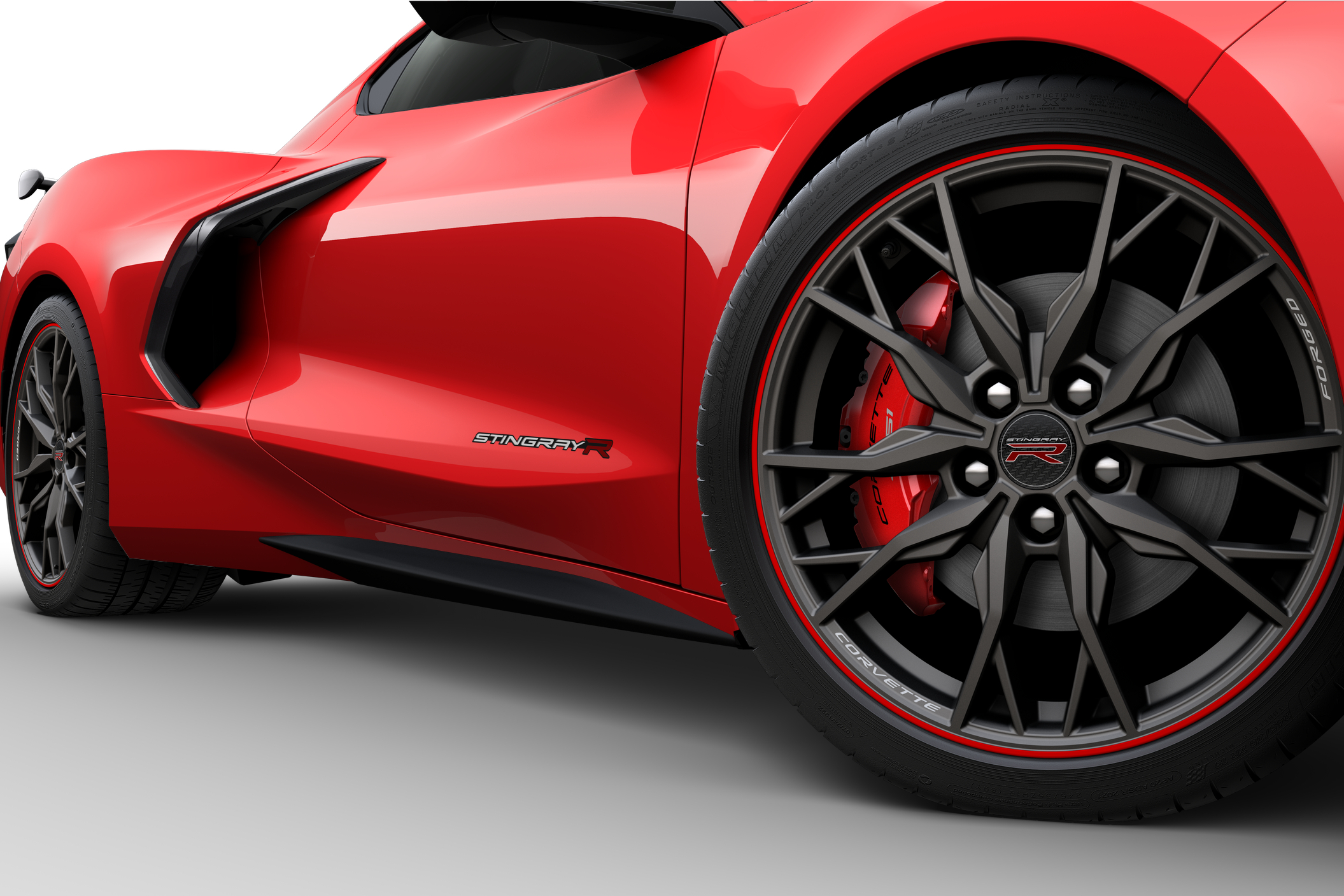Limited to 50 examples with deliveries set to begin in January 2026, the Stingray R features a number of cosmetic changes inspired by the race-winning C8.R GT3 car, such as a carbon fibre roof, black side skirt extensions, 20-spoke gloss black forged aluminium wheels (19-inch front, 20-inch rear) with a red lip stripe, red brake calipers, and black exhaust tips.
