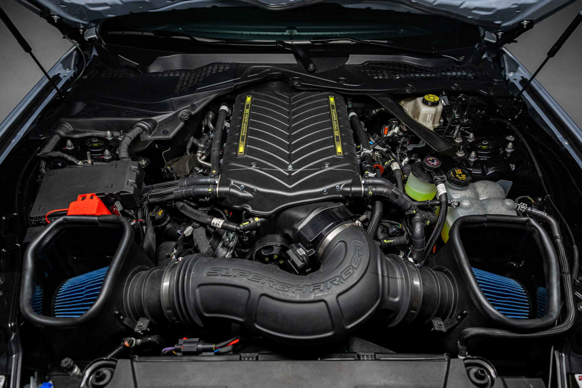 That’s even more than the 634kW Dark Horse-based Shelby Super Snake R (which uses the same supercharger) and the 608kW 5.2-litre supercharged Mustang GTD, making the RTR Spec 5 the most powerful Mustang with a warranty.