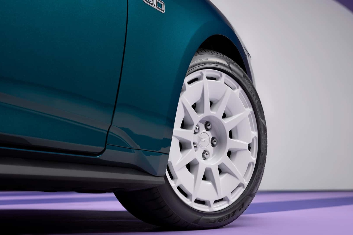 This includes a new colour, Adriatic Blue Metallic, which is inspired by the teal that was available on the Fox Body, while the two wheel options are both white, in another ‘80s throwback. The standard wheel is a 19-inch, five-spoke design, but the option wheel is a multi-spoke design that looks like it was lifted from an Escort WRC car of the era.