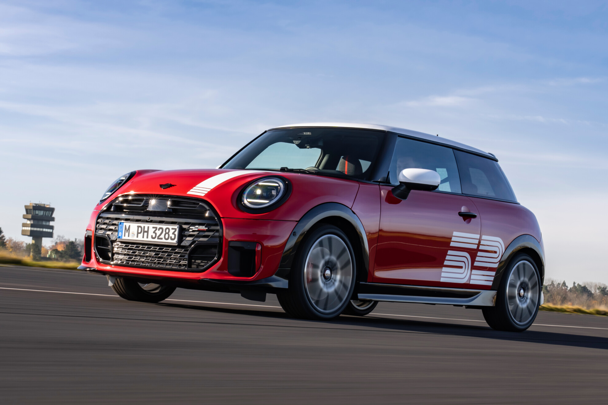 Paying tribute to the 1965-winning combination of Timo Mäkinen and Paul Easter – who took the Cooper S’s second consecutive Monte Carlo Rally win – the special edition hatchback is finished in Chili Red paintwork, complemented by a white bonnet stripe which stretches to the boot.