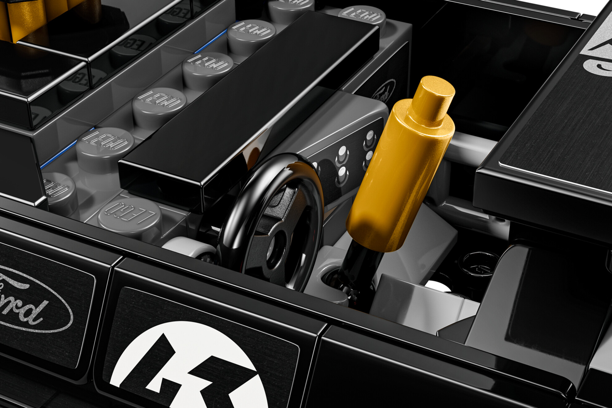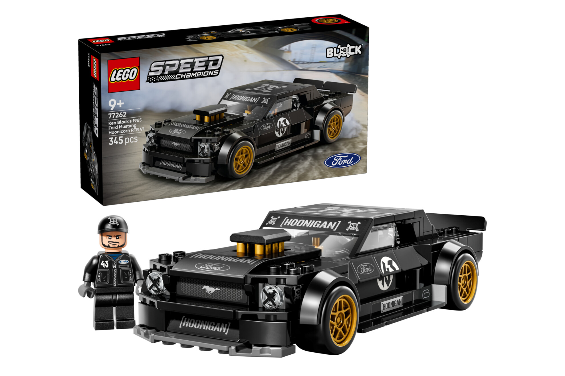 Presented in ‘V1’ guise as it appeared in the 2014 Gymkhana Seven film – where Block slid the all-wheel drive Mustang through LA – the Hoonicorn is a part of the Lego Speed Champions series, featuring its gold wheels and intake tubes.