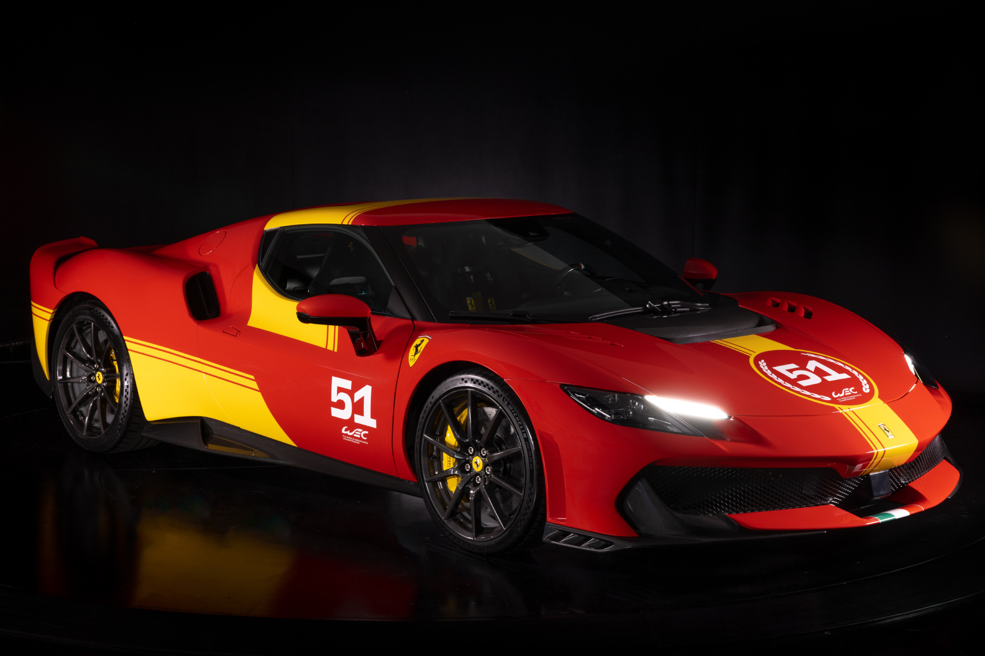 That includes the Hypercar’s predominantly Rosso Scuderia red livery with Giallo Modena yellow stripe highlights, an Italian flag on the lower front bumper, as well as the winning number #51.