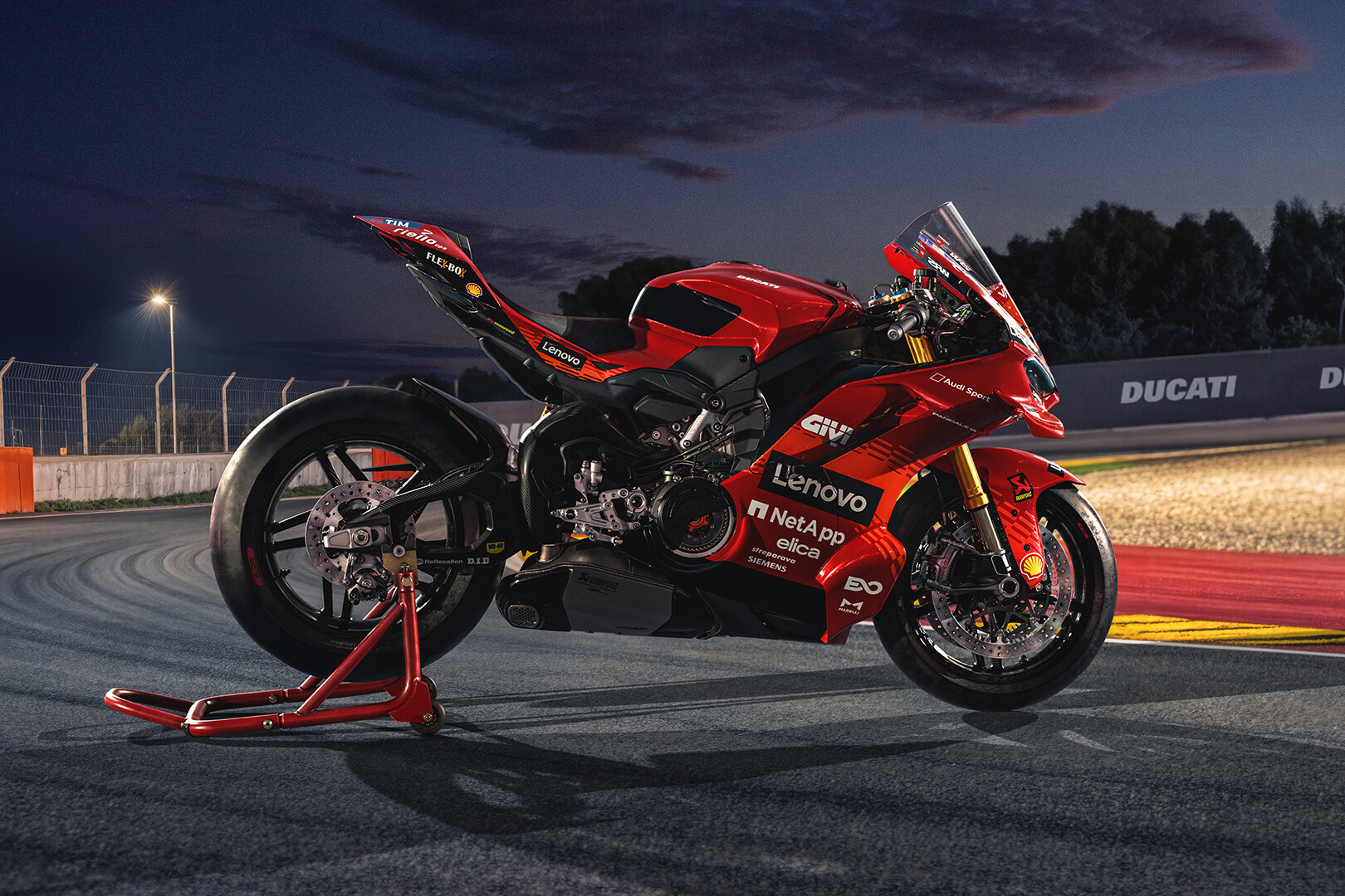 Other performance enhancements include a nine-disc dry clutch, five-spoke carbon fibre wheels, Ducati’s front brake Pro+ Brembo pack, an Akrapovic exhaust and GPS module for those wanting to take it to the track.
