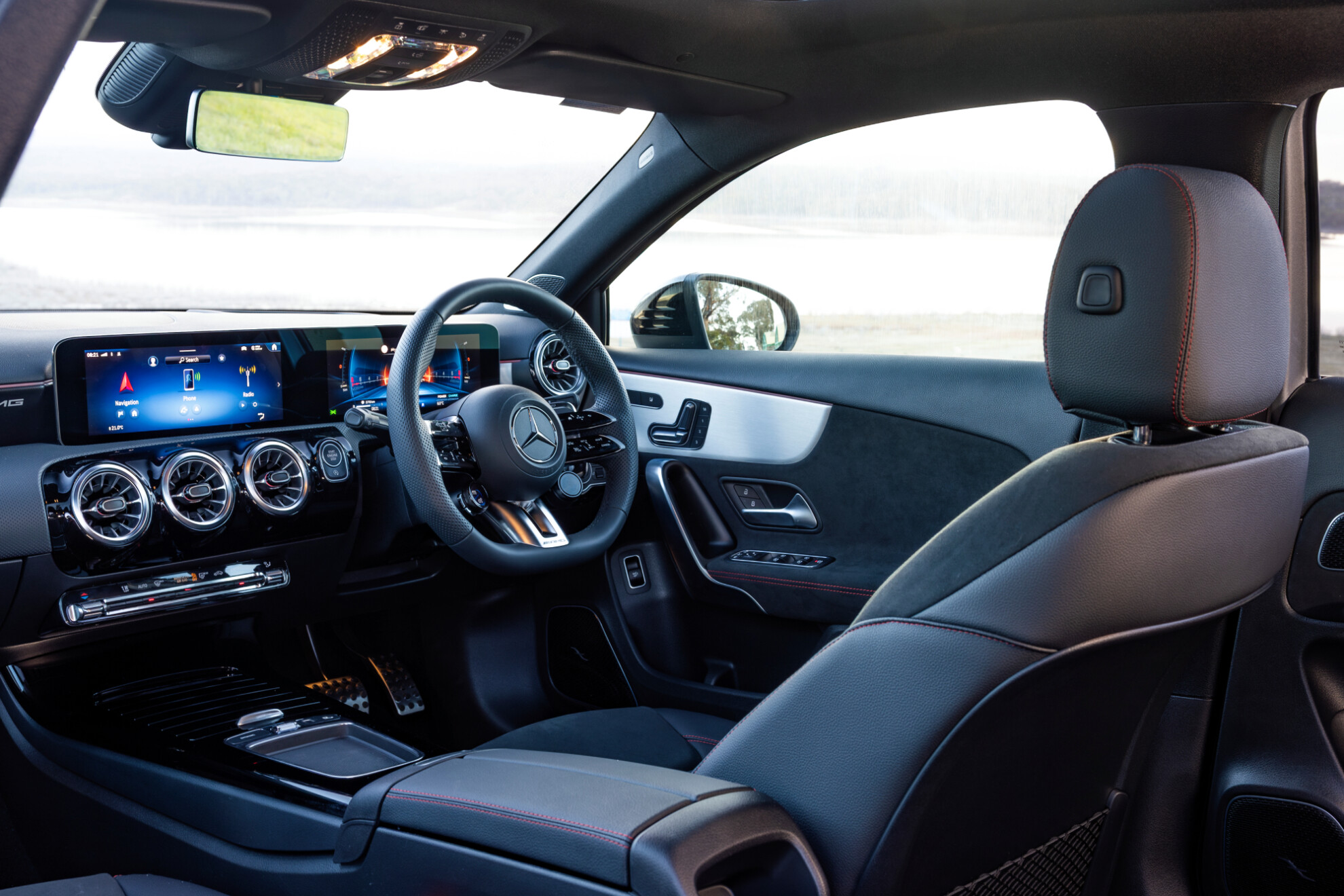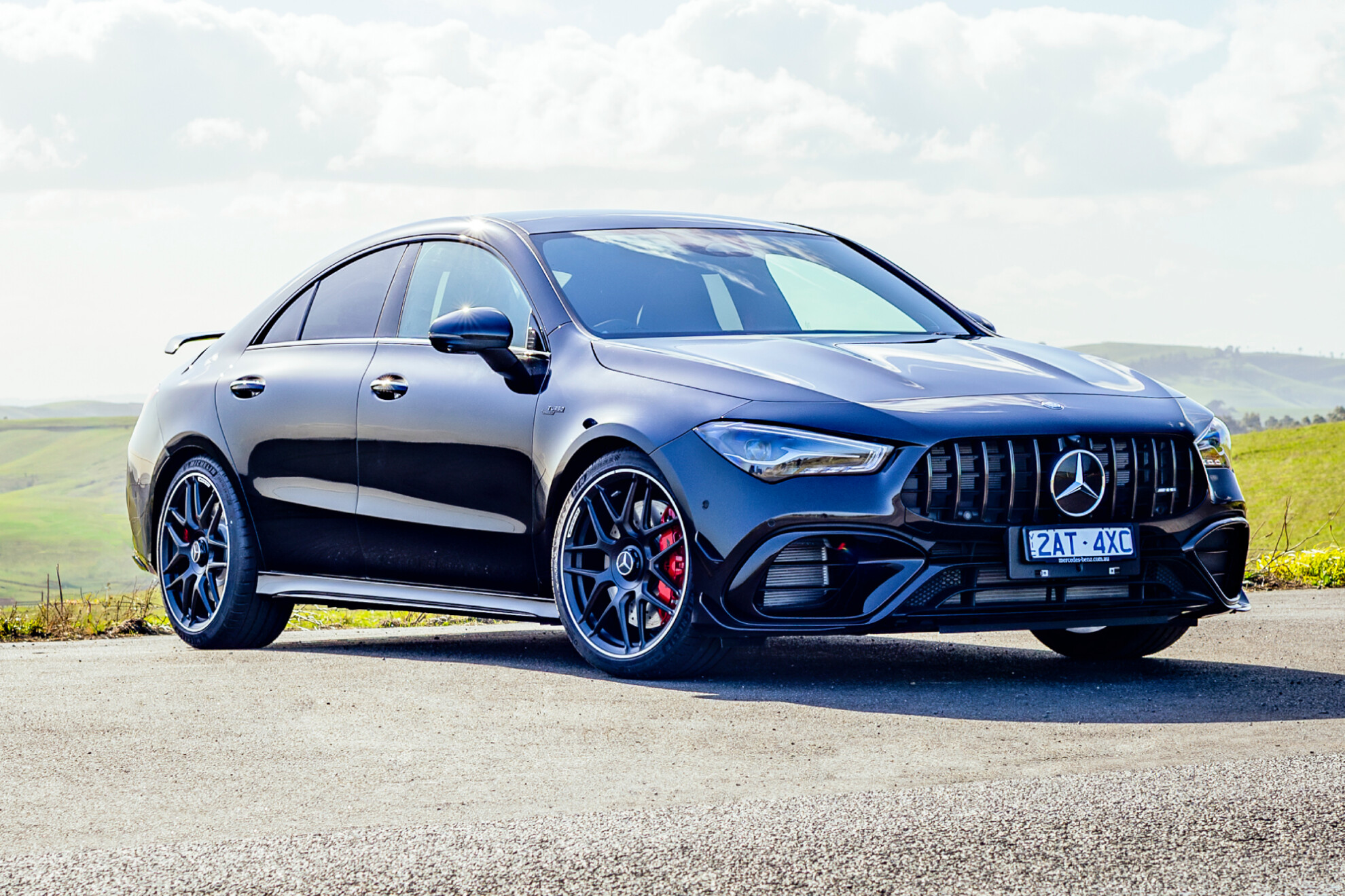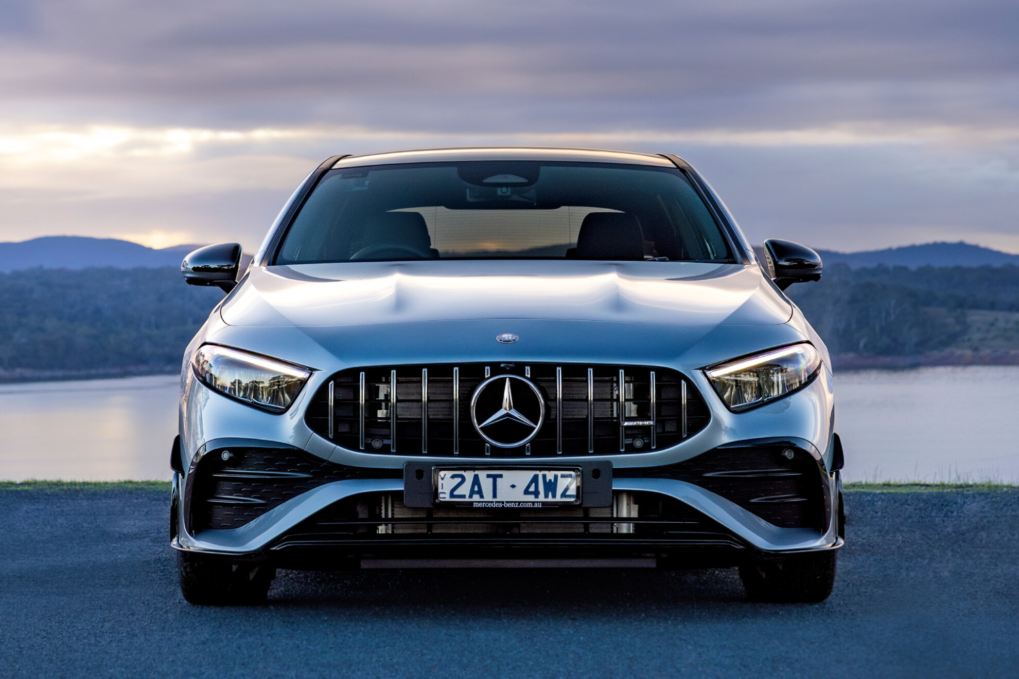 The A35 hatch/sedan and CLA35 now get an AMG Aerodynamics Package – consisting of a front splitter and canards, rear wing or spoiler, and high-gloss black diffuser – plus black 19-inch alloy wheels, red brake calipers, Artico and Microcut black upholstery with red contrast stitching, and aluminium interior trim.