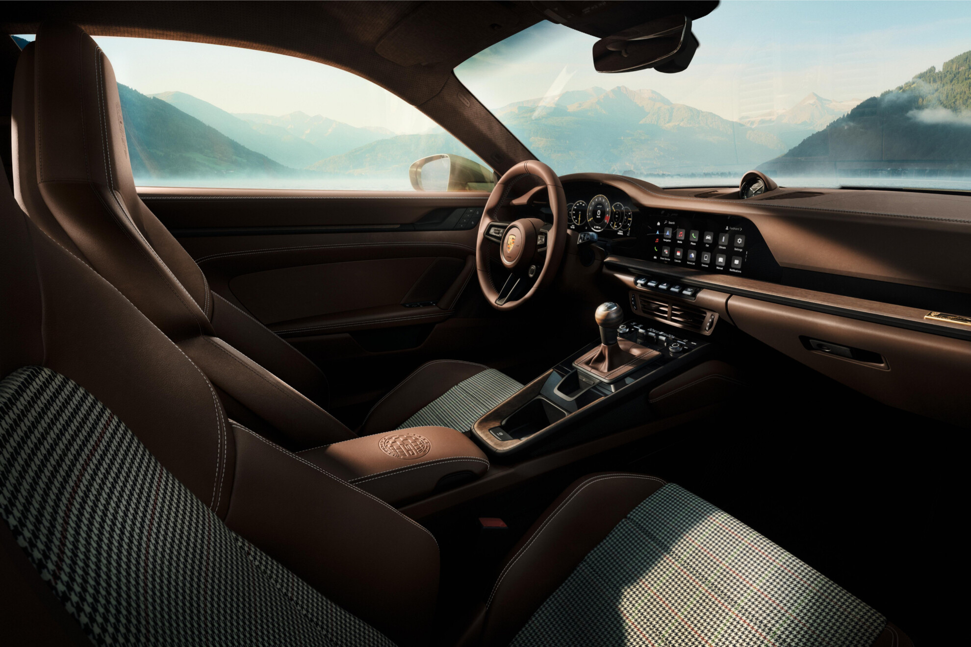 Porsche has also fitted the Sport Chrono watch to the top of the dashboard, its design based on the Chronograph 1 which was originally a one-off piece for F.A. Porsche. His signature can also be found in the cabin on plaques.