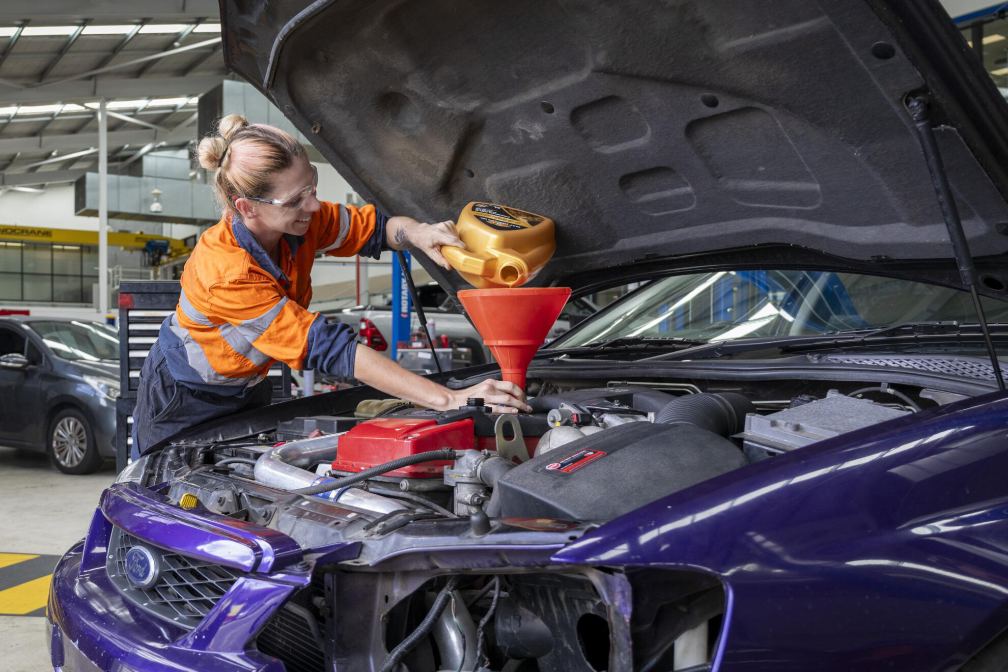 Donated to a Queensland TAFE campus, the Falcon is now one of many cars which mechanics in training can hone their skills on.