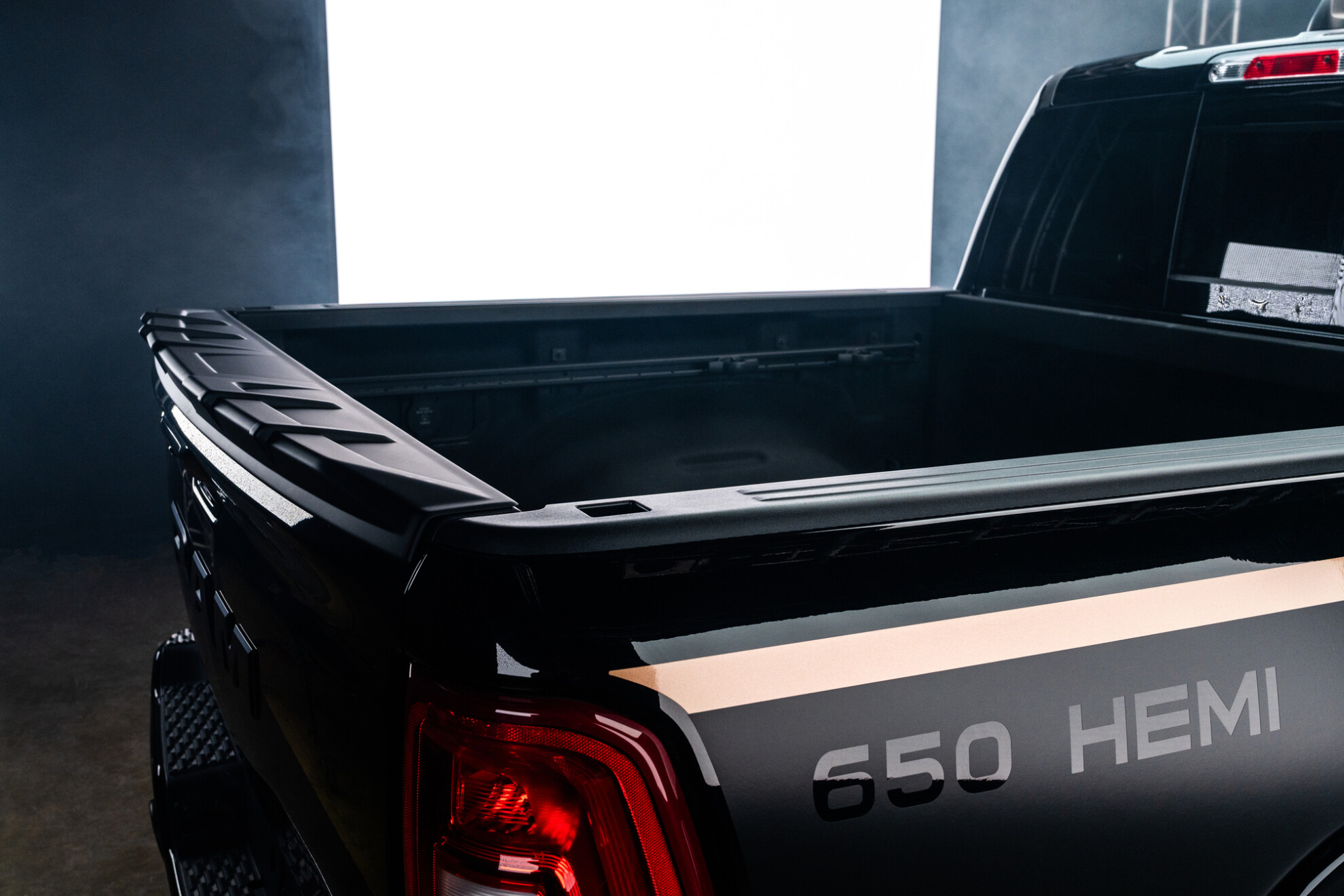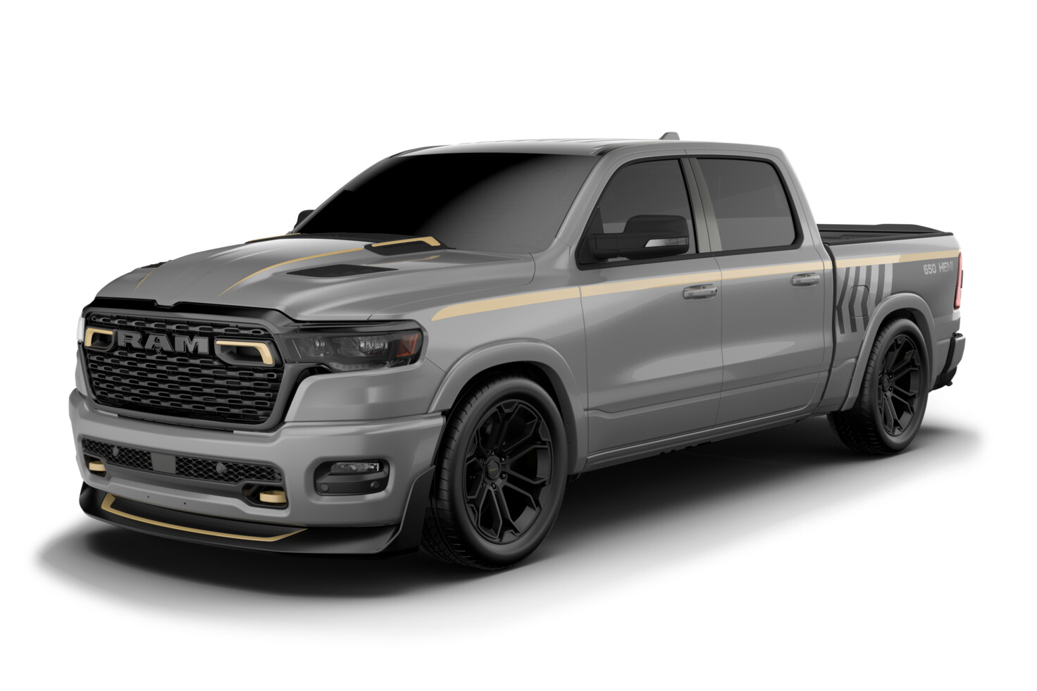 Cosmetic changes to the new pickup include a front lip spoiler and a rear spoiler, while it also gets a gold-accented livery signifying its 650 horsepower output. Inside there’s new gold and silver contrast stitching on the optional black leather upholstery.