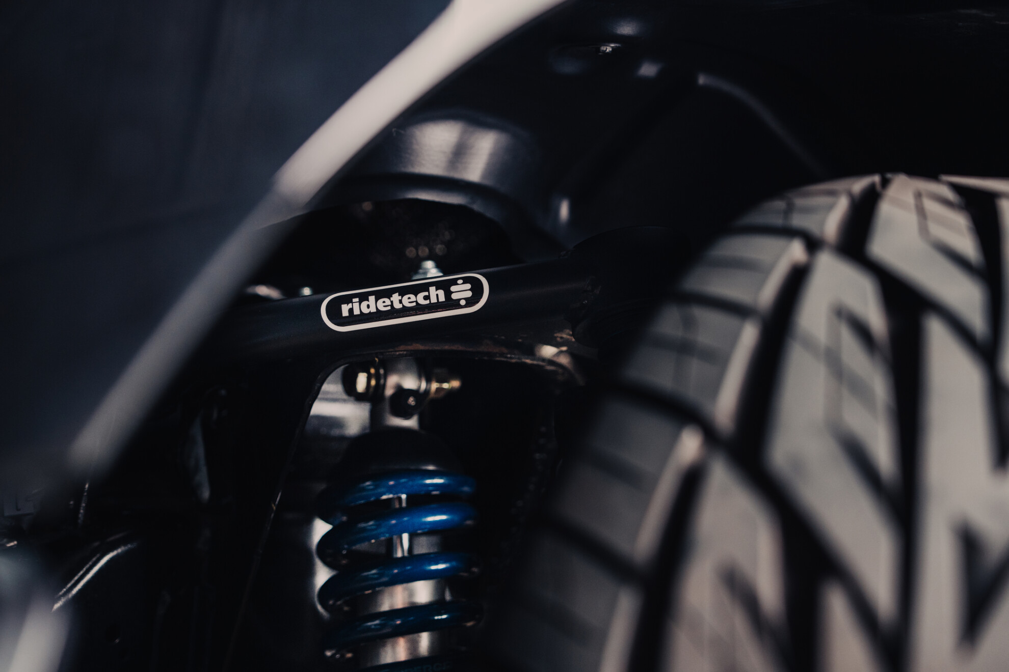 Ridetech coilovers (owned by Fox) have dropped the 1500 by 76mm at the front and 140mm at the rear, while the brand claims its handling is also improved thanks to tubular control arms, better shock absorbers and traction bars for the rear leaf springs.