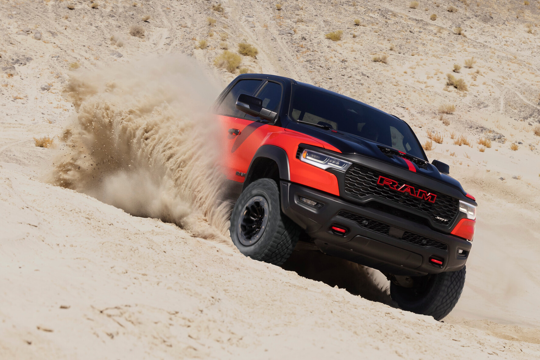 Of course, it isn’t a straight-line, one-trick pony, with the SRT TRX’s off-road credentials including Bilstein Black Hawk e2 adaptive dampers (borrowed from the 1500 RHO), a revised traction and stability control system, and a huge 35cm of suspension travel.