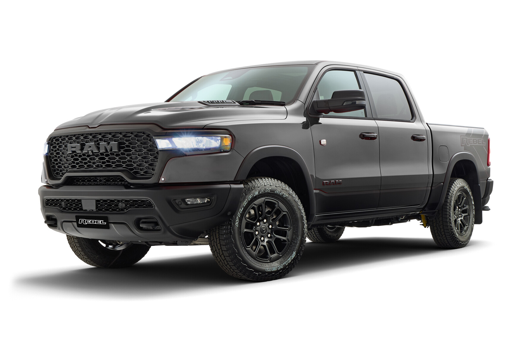 Inside, Rebel-specific highlights include red-and-black interior upholstery and Rebel stitching, paired with the carry-over heated front and rear outer seats.