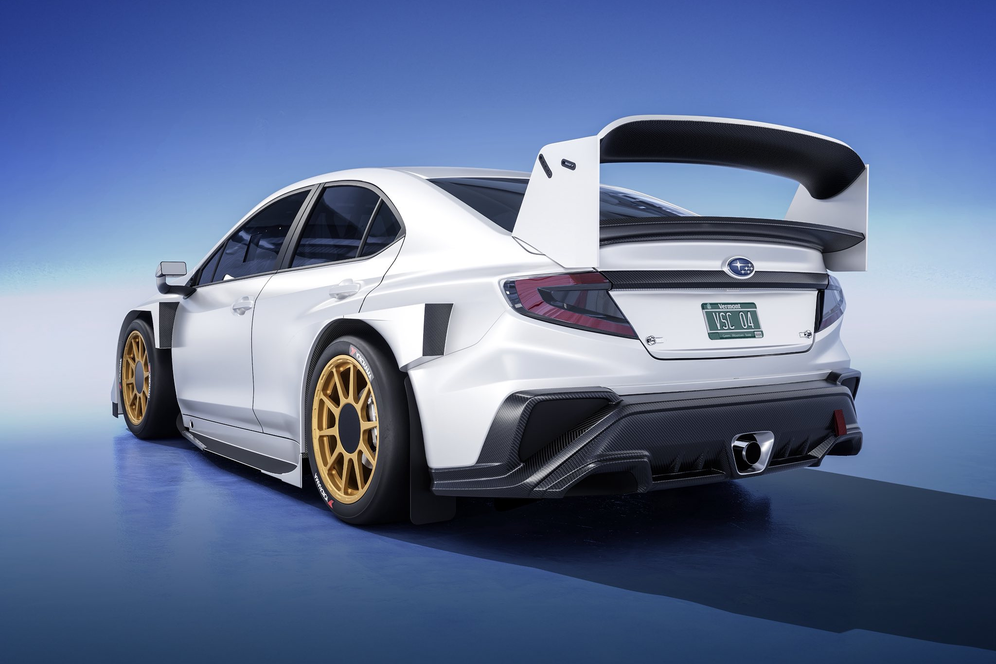 These renders are based on the outright class WRX, with its prominent lip soiler, vented bonnet, roof duct, side skirts, big rear wing, pumped wheel-arches and unique centre-exit exhaust – all elements which make it look far more aggressive than the road car, a model which has been criticised for its black-clad wheel-arch trim since launch.