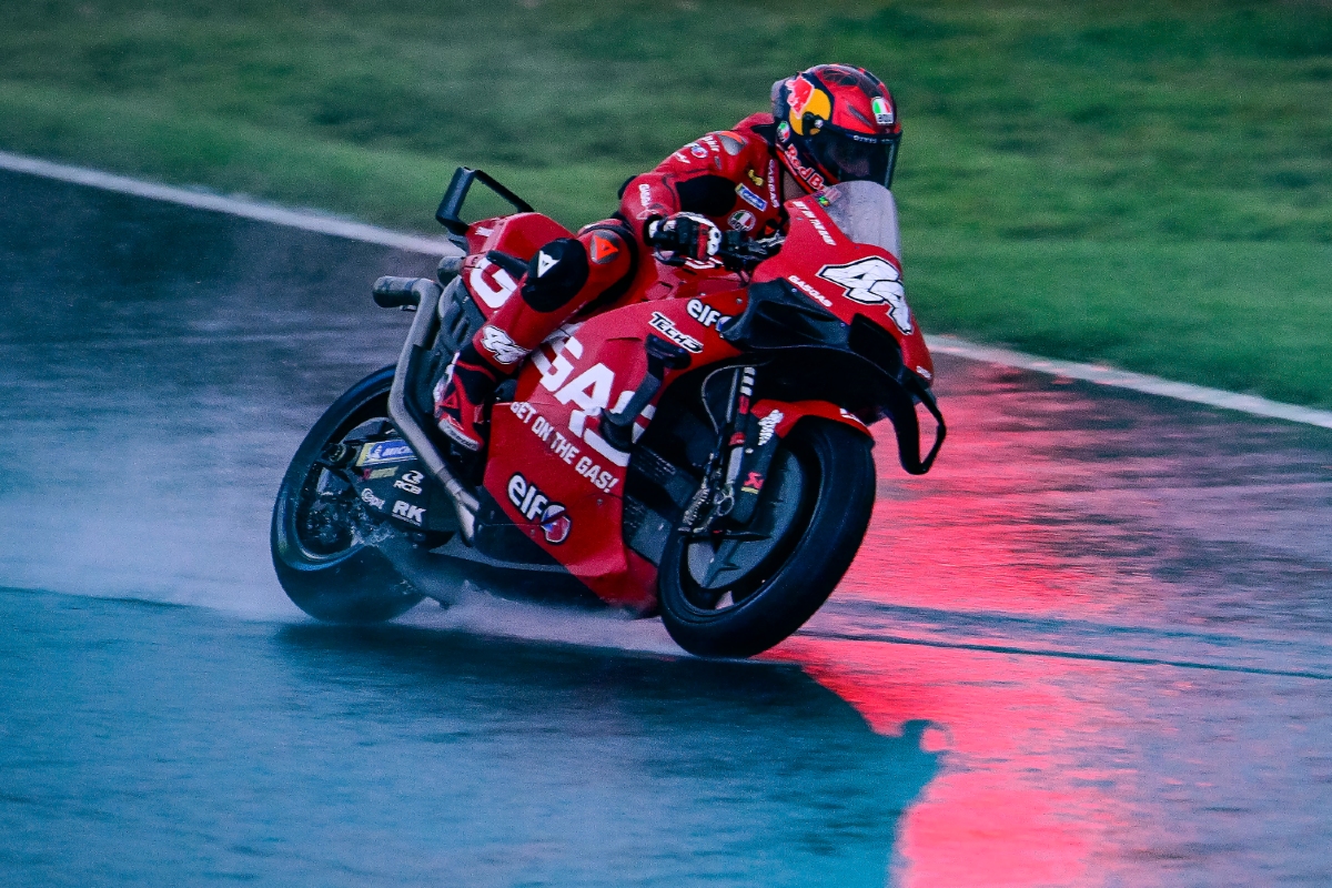 No sudden changes in direction, you will lose grip far quicker in the wet than in the dry. Try to stay as upright as possible, keeping your lean angle to a minimum therefore maximising the amount of tyre that is connected to the road. Be slow with your throttle inputs and your braking to avoid wheels spinning or locking and you going down. Slow and steady wins the race for rain riding.