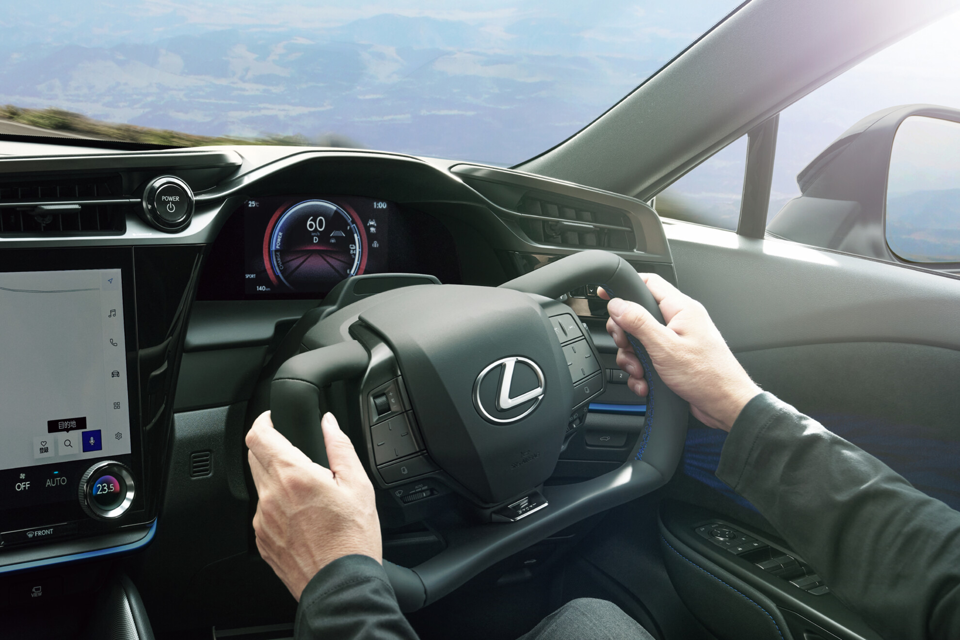 That is, if you can call it a wheel, as Lexus has gone down the path of Tesla by giving the high-end EV an aircraft-style ‘yoke’, a rectangular-shaped unit which goes without a traditional top portion, delivering a very different driving experience.